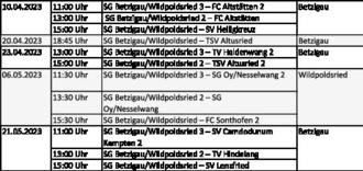 im Frühjahr 2023 werden die Heimspiele unserer drei Seniorenmannschaften überwiegend in Betzigau ausgetragen nachdem im Herbst die Spiele bei uns in Wildpoldsried stattgefunden haben.