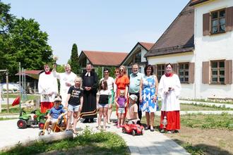 Die Segnung nahmen Pfarrer Vitus Schludermann und Pater Jacek Filipiuk vor und machten die vertrauensvolle Zusammenarbeit der evangelischen und katholischen Kirche vor Ort sichtbar. Das gute Miteinander zum Wohl der Menschen, wurde bei der Präsentation des vielfältigen Angebots im und rund um den Alten Pfarrhof St. Georg in Wildpoldsried sichtbar gemacht. Die Klänge der neu gegründeten Wildpoldsrieder Alphorn Bläsergruppe erfreute die Gäste.