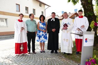 Kirchenpfleger Wendelin Einsiedler, Bürgermeisterin Renate Deniffel, Pfarrer Vitus Schludermann, Pater Filipiuk Jacek