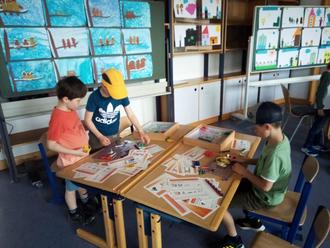 Neben der Kunstauktion waren am Schulfest noch andere, kulinarische und kreative, Aktionen geboten: Der Elternbeirat der Grundschule Wildpoldsried verkaufte Kuchen und Getränke. Er spendierte auch zu jedem ersteigerten Gemälde einen Gutschein für ein Stück Kuchen und ein alkoholfreies Getränk oder einen Kaffee. Vielen herzlichen Dank dafür!