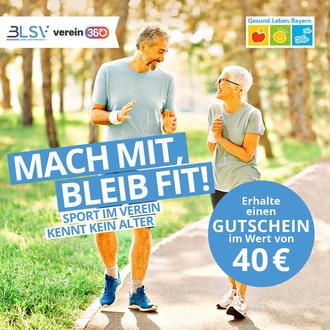Sport schützt und verbessert nachweislich die Gesundheit. Aus diesem Grund fördern der Bayerische Landes-Sportverband e.V. (BLSV) und das Bayerische Staatsministerium für Gesundheit und Pflege noch bis zum 31.12.2023 den Vereinseintritt von Menschen ab dem 50. Lebensjahr mit dem Gutscheinprogramm „Mach mit – bleib fit“.