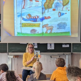 Frau Reichart wurde für ihre Lesung mit einem dicken Applaus belohnt. Die drei Klassen freuten sich sehr über das Buchgeschenk, denn so konnten die ansprechenden Illustrationen und natürlich die Texte noch einmal studiert werden.