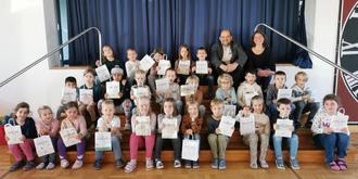 Auch dieses Jahr erhielt jedes Erstklasskind eine gut gefüllte Lesetüte von Herrn Schöll, dem Inhaber der Erlebnis-Buchhandlung didactus. Umrahmt wurde die Veranstaltung mit gelungenen Beiträgen der diesjährigen Zweitklässler, die auch die Lesetüten im Vorfeld individuell gestaltet haben.