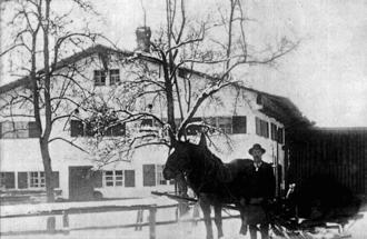 Franz Josef Gschwend (1870-1954) Urgroßvater von Dietmar Traut vor dem heutigen Dorfmuseum