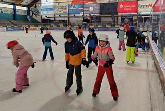 Am Dienstag, 26.11.2024 war es endlich soweit und die „wilde Fahrt“ ging los. Um 9 Uhr stiegen die 3. und 4. Klassen der Grundschule Wildpoldsried in den Bus ein und fuhren nach Kempten zur Eisporthalle. Dort angekommen hieß es erstmal Schlittschuh anziehen und die ersten Schritte auf dem Eis wagen. Schließlich wurden noch Stationen aufgebaut, an denen die Kinder ihr Können unter Beweis stellen konnten. Alle hatten jede Menge Spaß! Doch die Zeit verging wie im Flug und schon stand wieder die Abreise an. Zufrieden und glücklich endete damit ein besonderer Schultag.