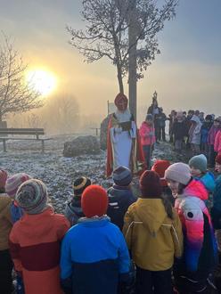 Auch in diesem Jahr besuchte der Heilige Nikolaus die Schulkinder der Grundschule Wildpoldsried am Hungersberg. Die Aufregung war groß und die Kinderaugen leuchteten, als der Heilige nahte. Herzlich wurde er mit zwei Nikolausliedern begrüßt. Stolz präsentierten die einzelnen Klassen nach Begrüßungsworten durch den Heiligen Nikolaus Erlerntes wie Rhythmusstücke, ein kleines Theater, ein Akrostichon, Postkarten, Gedichte und weitere Lieder. Der Besuch war sehr angetan von den Darbietungen.