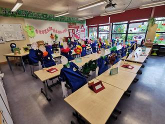 Um 16.45 Uhr führte die 2. Klasse mit Sophia, Lena, Linnea und Viola einen Tanz zu “Boom boom girl” (by Daddy Yankee) in der Turnhalle auf, dessen Choreographie Sophia aus der 4. Klasse mit der Vorgabe erstellt hat, möglichst viele Handbewegungen einzubauen. Dies hat sie mit Bravour umgesetzt und den Tanz mit Unterstützung von drei ihrer Mitschülerinnen, Lena, Linnea und Viola, mit den Kindern der 2. Klasse einstudiert. Hut ab vor den kleinen und großen Tänzern sowie vor den Technikern der 2. Klasse, die ihren Part ebenfalls sehr zuverlässig umsetzten! Der Schulchor sorgte mit dem Lied „Schule ist mehr“ für einen gelungenen Abschluss des Schulfestes. Und die Challenge? Diese haben die Kinder mit Hilfe ihrer kleinen und großen Geschwister mit insgesamt 115 verschiedenen Handabdrücken bei momentan 114 Schülern knapp gewonnen. Somit bekam in der Folgewoche jedes Schulkind als Belohnung einen Hausaufgabengutschein.