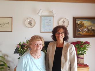 Zum 90. Geburtstag wird selbstverständlich noch durch Bürgermeisterin Renate Schön persönlich gratuliert und so konnte zum Beispiel Elisabeth Kistler, Ehefrau unseres verstorbenen Ehrenbürgers Hermann Kistler, im Juli die Gratulation und Glückwünsche entgegen nehmen.