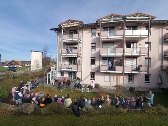 In Haldenwang liegen der Kindergarten und Tagespflege direkt nebeneinander. So lassen sich Begegnungen leicht gestalten. Das Zusammensein der verschiedenen Generationen ist eine echte Bereicherung für alle. Die Kinder kommen immer wieder vorbei, etwa an St. Martin, zum Nikolaustag oder wenn ein Zauberkünstler zu Besuch ist, berichtet Johannes Görner, der Leiter der Tagespflege. Die Freude ist bei Alt und Jung an den strahlenden Augen abzulesen. Für die Gäste der Tagespflege werden damit zusätzlich schöne Erlebnisse angeboten, die ihr Leben bereichern.