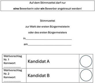 Wie auf dem neben bezeichneten Stimmzettelmuster werden in Wildpoldsried zwei Kandidaten zur Wahl stehen.