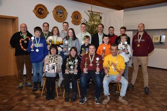 Weiter ging es mit den Vereinsmeistern der einzelnen Klassen, hier wurden jeweils der Beste und der Zweitbeste ermittelt und mit Medaillen ausgezeichnet. In der Schülerklasse wurde Sophia Kleber mit 186 Ringen Vereinsmeister, Vizemeister ist Felix Stahl (139 R.), In der Jugendklasse belegte Lisa Stahl (371 R.) den ersten Platz, Marie-Christin Wallmeyer (368 R.) wurde Zweite. Jonas Pühler (374 R) ist der neue Vereinsmeister in der Juniorenklasse, Vizejuniorenmeister wurde Maximilian Wallmeyer (379 R.). In der Schützenklasse verwies Roland Fichtl mit 386 Ringen Manuel Arnold (377 R.) auf den zweiten Platz. Vereinsmeister bei den Luftpistolenschützen wurde Sebastian Holfelner (353 R.) vor Wolfgang Bergmann (324 R.)