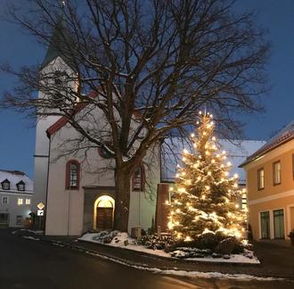 Traditionell zum ersten Advent stellt der OWV Waldthurn einen Christbaum am Marktplatz beim Kriegerdenkmal auf. Heidi und Dieter Grünauer stifteten eine wunderschön gewachsene Tanne, welche mit zahlreichen Lichterketten das bevorstehende Weihnachtsfest ankündigte. Dieter Malzer organisierte zahlreiche Helfer und dankte insbesondere der Firma Holzbau Riedl sowie Franz-Josef Beimler für den Transport. Nach getaner Arbeit wartete bereits die Pfarrhaushälterin Elisabet Kodalle mit Zwiebelkuchen und flüssiger Nahrung. Die Metzgerei Bergler spendierte wie in jedem Jahr eine ausgiebige Brotzeit.