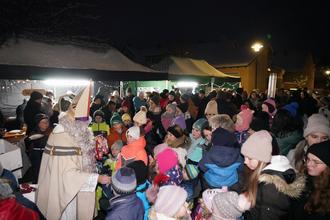 Vorweihnachtliche Worte findet der Heilige Nikolaus der Freien Wähler Waldthurn am Hostauplatz und verteilt anschließend seine Geschenksäckchen.