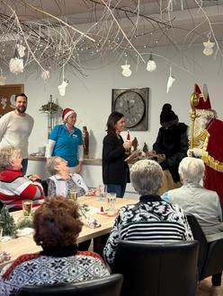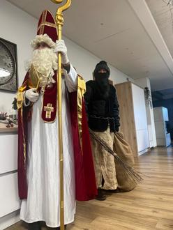 Am Freitag, einen Tag vor dem Nikolaustag, besuchte Bischof Nikolaus in seinem purpurroten Gewand höchstpersönlich die Tagespflege unter`m Fahrenberg. Im gemütlich, adventlich geschmückten Aufenthaltsraum warteten die sichtlich berührten Senioren auf den Auftritt des heiligen Nikolaus. Die Leiterin der Tagespflegeeinrichtung Melanie Reber und die sehr engagierten und fürsorglichen Schwestern dichteten und reimten für jeden Gast einen passenden Vers, welche auch zum Teil für heitere Momente sorgten. Es wurde berichtet über eine Frau, die gerne die hauseigene Kapelle besucht, einem Herrn der schlau ist wie ein Fuchs und immer zu Scherzen aufgelegt ist, oder eine ältere Dame, die täglich ihre Runden durch den Markt dreht. Andere wiederum helfen in der Küche mit und kennen jede Pflanze und jedes Gewächs. Knecht Ruprecht, den Harald Zosel perfekt imitierte, brauchte die Rute nicht wehen, sind alles brave Leute, das konnte er sehen. Auch für die immer gut gelaunten Schwestern hatte der Nikolaus lobende Worte mitgebracht und fügte wörtlich dazu: „Unbezahlbar eure Wärme, Geduld und euer offenes Ohr, auch das trug mir eure Chefin Melanie vor“. Selbstverständlich befand sich im großen Sack für jeden ein liebevolles Geschenk, welches Knecht Ruprecht an die sichtlich ergriffenen Senioren verteilte. Mit einem bischöflichen Gruß verabschiedete sich der heilige Nikolaus und versprach im nächsten Jahr wieder zu kommen, was auf große Dankbarkeit und Begeisterung stieß.