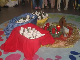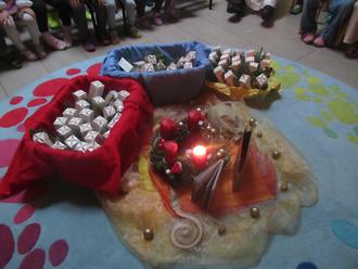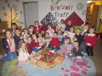 Die Gelbe Gruppe bereicherte die Feier mit dem Lied "Mein Adventskranz". Während sie sangen, wurde feierlich die erste Kerze des Adventskranzes angezündet.