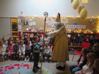 Die Vorfreude war spürbar, als die Kinder, die sich auf ihre großen Auftritte bestens vorbereitet hatten, auf dem Platz vor der Roten Gruppe zusammentrafen. Alle Augen waren auf die Tür gerichtet als der Heilige Nikolaus (Hr. Josef Pflaum) hereinkam.
