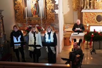 Musikalisch inspirierend umrahmt wurde die Lesung vom Waldthurner Frauendreigesang „TriAngel“ mit Andrea Götz (Sopran), Steffi Daubenmerkl (Mezzosopran) und Doris Völkl (Alt). Mit ihrem klaren, harmonischen Stimmen prägten und ergänzten sie die außergewöhnliche, adventliche Stimmung. Lieder wie „Im Dunkel naht die Weihnacht“, „Die stillste Zeit“, „Nun es nahen sich die Stunden“ und „Maria durch ein Dornwald ging“ schufen im Kerzenschein einen feierlichen Rahmen mit besonderer Atmosphäre.