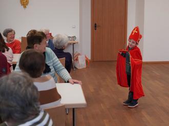 Bei der Klanggeschichte klopften Lea Eiser und Kilian Kaffo gekonnt im Takt das „Nikolo bum, bum“ auf der Cajón-Trommel. Imposant, mit welcher Dynamik der kleine Nikolaus in der Person von Ludwig Keil selbstbewusst zur Freude aller durch die Reihen marschierte.
