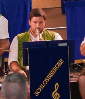 Die 19 Schlossberger lieferten anschließend zu Höchstform auf, allein den Becken - Spieler Thomas Grießl zu beobachten, mit welcher Leidenschaft er die tellerförmigen Metallscheiben spielte, war ein Genuss nicht nur für die Ohren sondern auch für die Augen.