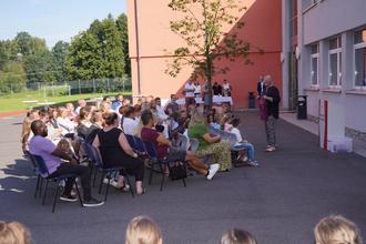 Der Theisseiler Bürgermeister Johannes Kett wünschte als Vertreter des Schulverbandes eine schöne Schulzeit und spendierte den Kindern zusammen mit der Rektorin ein leckeres Eis.