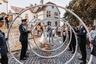 Im Anschluss an die Trauung standen Abordnungen der Feuerwehr Spielberg, bei der die Braut Festdame war, Spalier. Die KLJB Waldthurn war ebenfalls auf die andere Seite des Fahrenberg gekommen, um dem sympathischen Brautpaar herzlich zu gratulieren.