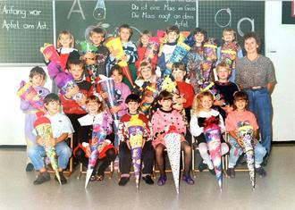 Damals war eine 1a-Klasse mit Lehrerin Margit Neumuth und eine 1b-Klasse mit Lehrerin Silvia Wittmann, die bei Treffen gerne dabei war.