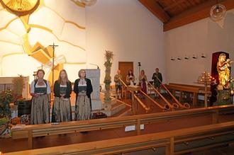 Landkultur Waldthurn bietet in der Pfarrkirche St. Sebastian in Waldthurn ein Marienlob. Mit dabei die Gesangsgruppe TriAngel von links: Andrea Götz, Steffi Daubenmerkl und Doris Völkl. Die Schellenberger Alphornbläser mit Christian Albrecht, Inge Hirschleb sowie Maria und Bernhard Träger tragen zum musikalischen Erfolg des Abends bei.