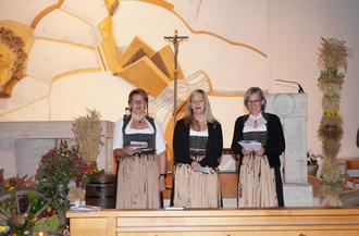 „Nimm Dir Zeit“ sangen die drei Stimmen und Bernhard Schmidhuber begleitet an der Orgel. Eine Besonderheit war die Aufforderung der Sängerinnen beim „Schau auf`s Guade im Leben“ das Schmidhuber am Akkordeon begleitete.