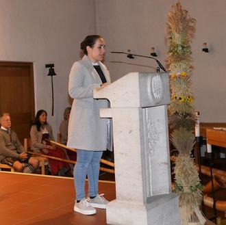Die verbindenden Worte sprach Hannah-Sophia Hornstein, die souverän und einfühlsam durch diese Marienstunde führte und stimmlich genau zum Abend passte.