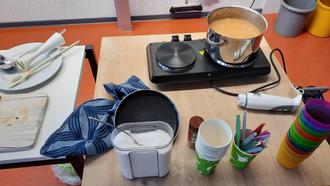 Die Zutaten und Materialien brachte die Klassenlehrkraft mit. Die Kinder staunten, was alles so den Weg ins Klassenzimmer fand. Äpfel, Zucker, Zimt, ein Zweiplattenherd, ein Kochtopf, ein Schneidebrett, ein Schöpfer, ein scharfes Messer, ein Gemüsemesser, ein Pürierstab, ein Ablageteller, je 20 Löffelchen und Becher, ein Kochlöffel, eine Schürze und ein Geschirrtuch.Der Arbeitsplatz war schnell vorbereitet, die Äpfel wurden sorgfältig gewaschen und trockengerieben. Auf dem Brett schließlich geviertelt und vom Kernhaus befreit. Der Herd wurde angeschaltet, im Topf ein wenig Wasser zum Kochen gebracht, die vorbereiteten Äpfel hineingefüllt. Unter gelegentlich Umrühren garten die Früchte dann. Das ging ganz flott, man sah und roch, wie schnell die Äpfel zerfielen. Nun kamen Zimt und ein Esslöffel Zucker hinzu. Alles wurde gründlich püriert, ein Schüler durfte probieren und nach dessem „Okay!“ konnte das fertige Fruchtmus schon für jedes Kind in einen Becher gefüllt werden. Das Löffelchen ausgeteilt und - obwohl der Apfelbrei noch heiß war - gleich vor der Pause ausgiebig probiert. Am Schluss mussten die Kochgeräte gespült und aufgeräumt werden. Schließlich wurde noch der Arbeitstisch gewischt. Alle waren sich einig, einfach zuzubereiten, sehr lecker und mit Gartenäpfeln und Fallobst geht es auch sehr gut. Manches Kind hätte sich noch Kaiserschmarrn mit Puderzucker dazu gewünscht.