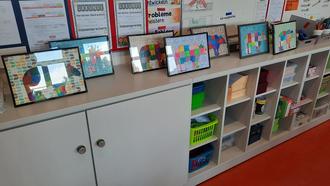 Im Kunstunterricht entstanden im November diese ganz besonderen Bären. Eine Bärenvorlage wurde mit Lineal mit Strichen versehen, bis Karos entstanden. Danach wurden die Farbfelder mit dick angemischten, kräftigen Farben ausgefüllt. Die Schulkinder achteten darauf, dass nichts verlief, malten stets Farbfelder aus, die nicht direkt nebeneinander lagen. Nun mussten die Bären noch sorgfältig ausgeschnitten und aufgeklebt werden und bekamen einen bunten Hintergrund. Schließlich wurden die Bilder noch mit einem passenden Rahmen versehen. (von Carina Hartwig)