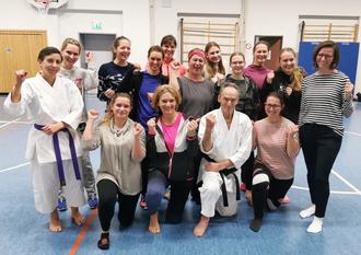 Am Abend des 19. November kamen dann die Erwachsenen zum Zug: 12 Frauen im Alter von 15 bis 50 Jahren trainierten unter der Anleitung von Josef Pflaum, Josef Reichenberger und Daniela Axmann in der Schulturnhalle. Innerhalb der angesetzten eineinhalb Stunden – die sich schließlich auf fast drei Stunden ausdehnten – wurde intensiv an Grundlagen der Selbstverteidigung gearbeitet.