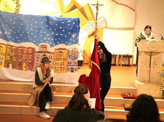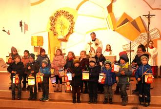 Zuvor feierten alle Beteiligten in der Pfarrkirche St. Sebastian mit Pfarrer Norbert Götz einen Wortgottesdienst. Eingangs zogen die Kinder der Kita in das Gotteshaus, stellten sich um den Altar, gaben mit ihren Laternen ein beeindruckendes Bild ab. Sie tanzten den Laternentanz und stellten gesanglich fest: „Heute ist St. Martinstag“.