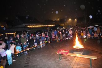 Der Geistliche erklärte den jungen Christen kurz den Sinn der Martinfeier und es fand ein Martinsspiel statt. Anschließend segnete er Kinder und Lichter. „St. Martin ritt durch Schnee und Wind“ sangen die Kinder und die Bläsergruppe Waldthurn spielte dazu“.