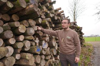Tobias Ott inspiziert das gelagerte Holz