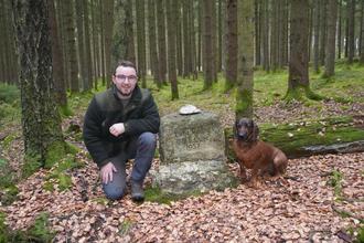 Tobias Ott mit seiner Hündin Luna an der Luhequelle bei Wampenhof