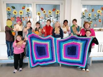 Mit Unterstützung ihrer WG-Lehrerin Frau Elisabeth Koller sind die Schüler der 4.Klasse aber bestens dafür vorbereitet und können sich künftig mit einem selbst gestrickten Schal wärmen. Erarbeitet am Strickbrett überzeugen die Ergebnisse auch optisch. Zuhause stricken und häkeln einige Schüler noch begeistert weiter. Ob Mütze, Schal, Dekoblume oder farbenfrohe Decke- auch für den Winter sind wir jetzt bestens gerüstet.