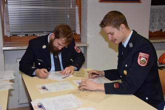 Nach dem Ausfüllen der Fragebögen, folgte der praktische Teil. Hier unterstützten die Jugendwarte der einzelnen Feuewehren Prüfer KBM Schmidt, in dem sie die einzelnen Aufgaben genauestens beobachteten. Zeitgleich übernahmen Jugendwart Josef Pflaum (FF Waldthurn) und Jugendwart Valentin Sax (FF Pleystein) die Auswertung der Fragebögen.