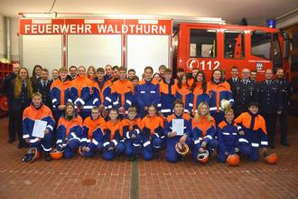 Nachdem alle Übungen erledigt und alle Punkte gezählt waren, konnte KBM Schmidt bekanntgeben, dass alle Teilnehmer bestanden haben. Schmidt dankte allen Ausbildern, für die gute Vorbereitung des Nachwuchses. Die Ausbildung der Waldthurner Feuerwehrjugend übernahmen Anna-Marie Holfelner und Josef Pflaum junior. Die Jugendfeuerwehr Lennesrieth wurde von Valentina Stahl vorbereitet. Ein weiteres Danke ging an alle Prüfungshelfer des Abends und ein letztes Dankeschön ging an Christian Schön, den stellvertretenden Kommandanten der Waldthurner Wehr: „Danke, dass wir den Wissenstest bei euch im Unterrichtsraum abhalten konnten“. Anschließend verteilte KBM Matthias Schmidt die Abzeichen in Bronze, Silber und Gold für die Stufen 1 bis 3, sowie die Urkunden für das Erreichen der Stufe 4.