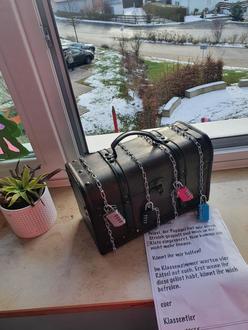 In der ersten Klasse war die Aufregung groß: Der böse Papagei Peipei hatte Mimi und das Klassentier Ernie in eine Kiste gesperrt! Zum Glück hatten die beiden noch Zeit, den Kindern einen Brief zu hinterlassen. Sie erklärten ihnen darin, dass sie 4 Rätsel lösen müssen, um die Zahlenschlösser an der Kiste zu knacken (Quelle: Colorful Classroom).