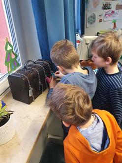 Problematisch war auch, dass das Wochenende schon vor der Tür stand und Mimi und Ernie drohten es in der Kiste verbringen zu müssen, wenn die Kinder sie Rätsel am Freitag nicht lösten.