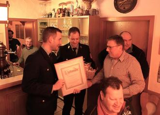 Anschließend hatte die Feuerwehrführung für den früheren Vorsitzenden Josef Schwab eine besondere Überraschung parat.