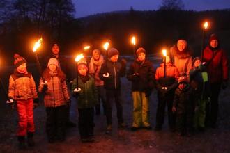 Das Junge Landvolk Waldthurn hat eine Fackelwanderung auf dem insgesamt 80 Kilometer langen Glasschleiferweg unternommen. Die Gruppe hatte sich das kleine Teilstück von der Prollermühle bis nach Neuenhammer ausgesucht, was für die Mädchen und Buben hinsichtlich der mystischen Figuren auf dem Schönwerth-Sagenweg im Zottbachtal sehr aufregend war. Selbstverständlich lud auch so manche freie Eisfläche in der Wiese zum „Ranscheln“ ein.
