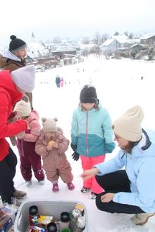 Weitere Familien verbrachten den entspannten und herzlichen Nachmittag bewusst gemeinsam – Eltern und Kinder saßen zusammen auf den Schlitten oder feuerten sich gegenseitig an. Für eine kleine Stärkung zwischendurch war ebenfalls gesorgt. Apfelpunsch, Lebkuchen und verschiedene Süßigkeiten fanden dankbare Abnehmer.