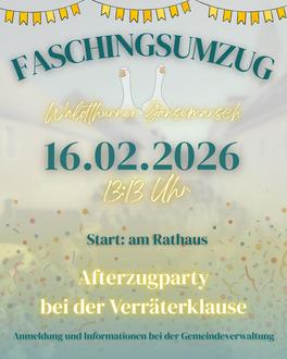 Anschließend wird der Gänsemarsch durch Waldthurn stattfinden und an der Verräterklause (Kühnhauser) mit einer Afterzugparty enden.