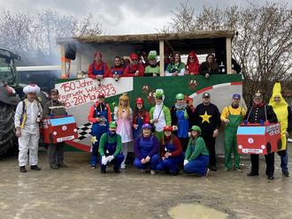 Viele Stunden der Vorbereitung investierte die Feuerwehr Waldthurn in den Faschingswagen, der auf das 150-jährige Jubiläum im Mai 2023 aufmerksam machte und viel Aufsehen erzeugte.