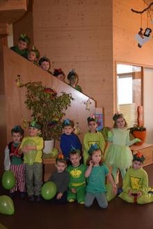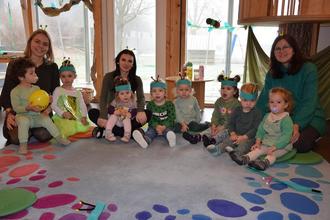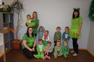 Die Krippen-Gruppen machten ihre Gruppennamen zum Motto - hier hüpften kleine Frösche und krochen kleine Raupen durch die Räume.