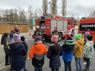 Der stellvertretende Kommandant Christian Schön sowie die Feuerwehrdienstleistenden Josef Pflaum und Jonas Beierl nahmen sich viel Zeit und hatten spannende Dinge für die Schülerinnen und Schüler vorbereitet.