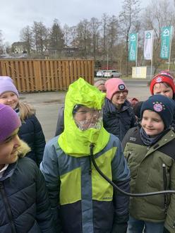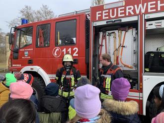Danach durften sich die Schülerinnen und Schüler noch die Einsatzfahrzeuge ansehen, eine Fluchthaube anprobieren, das Gewicht einer Pressluftflasche testen sowie ihre vielen Fragen loswerden.