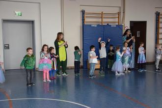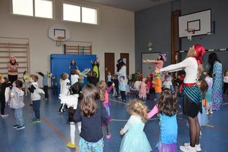 Am närrischen Donnerstag war es dann endlich soweit! Die große Faschingssause startete bereits am Morgen in den einzelnen Gruppen. Nach der Brotzeit, zu der es – passend zum Thema - „Ozeanwasser“ zu trinken gab, ging es für alle Kinder in die Turnhalle. Gemeinsam wurde getanzt, gesungen und immer wieder zogen Polonäsen durch den Raum. Zum kurzen Ausruhen und Kräfte sammeln ging es dann wieder in die Gruppen zurück. Anschließend blieben die Gruppentüren geöffnet, so dass die Kinder die Gelegenheit nutzen konnten, um in jeder Gruppe mitzufeiern und auch die Süßigkeiten-Buffets zu testen.